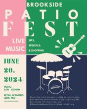 Save the Date for the inaugural Brookside Patio Fest happening Thursday, June 20th from 5 to 10 pm! Visit Brookside for live music at some of your favorite businesses and restaurants. It's a great way to spend a night out, supporting your favorite Brookside businesses and enjoying local musicians. Click below for details and lineup.